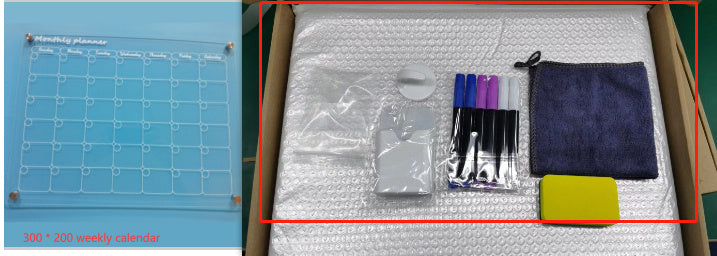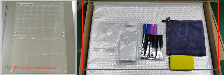 Note Board *1 Pen*5 Magnetic pen case *1 Rag *1 Hook*1 Non-marking adhesive*1 Paper box *1