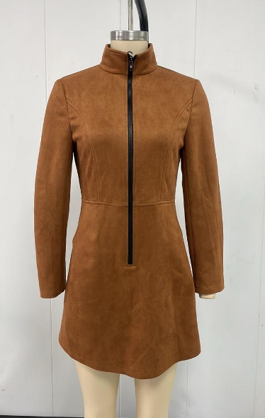 Deerskin Velvet French Long-sleeve Zipper Dress Short Skirt