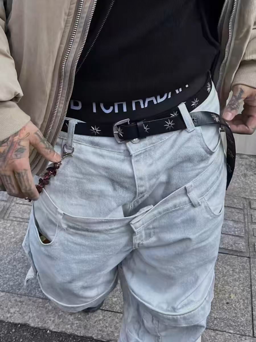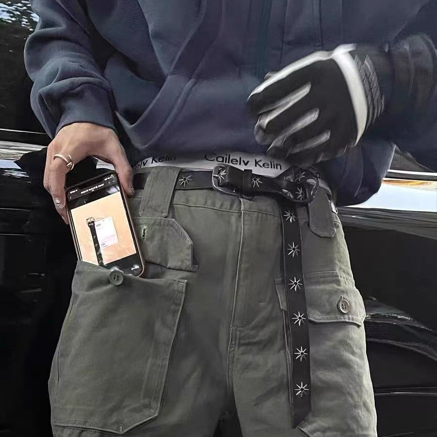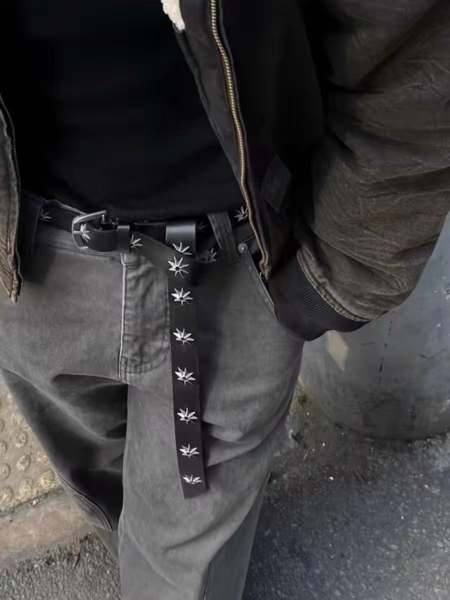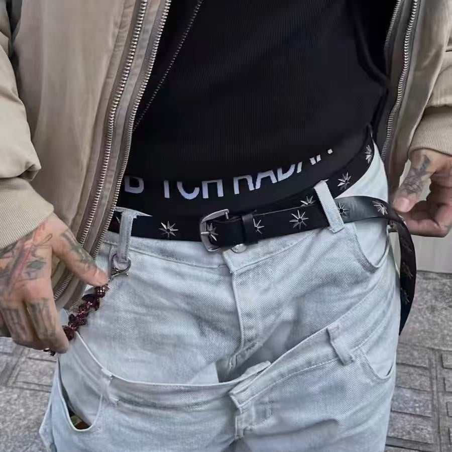 DIY Star Simple Black Retro Metal Men's Distressed Belt