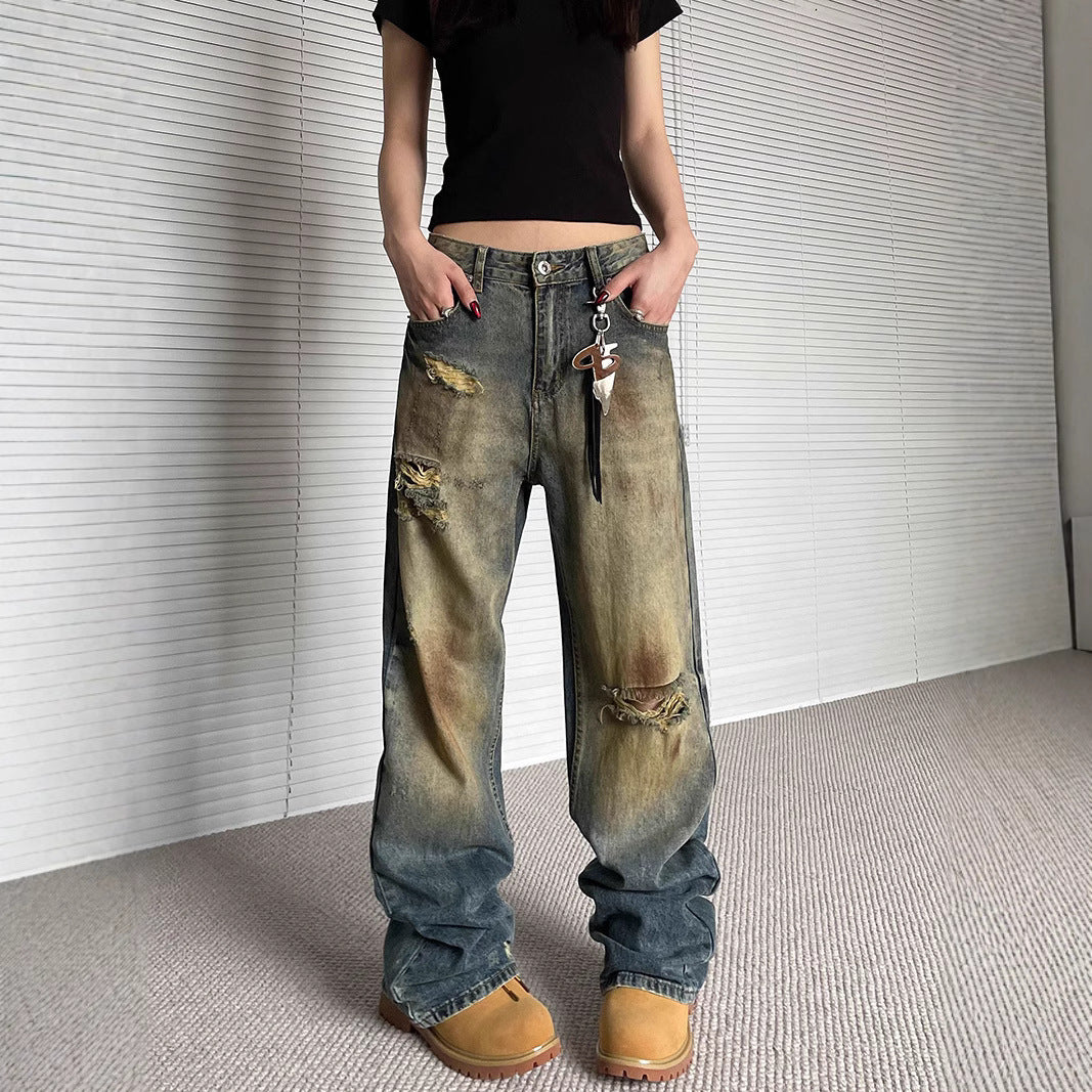 Niche Make Old Ripped Denim Fashion Brand Loose Straight Wide Leg Smart Trousers